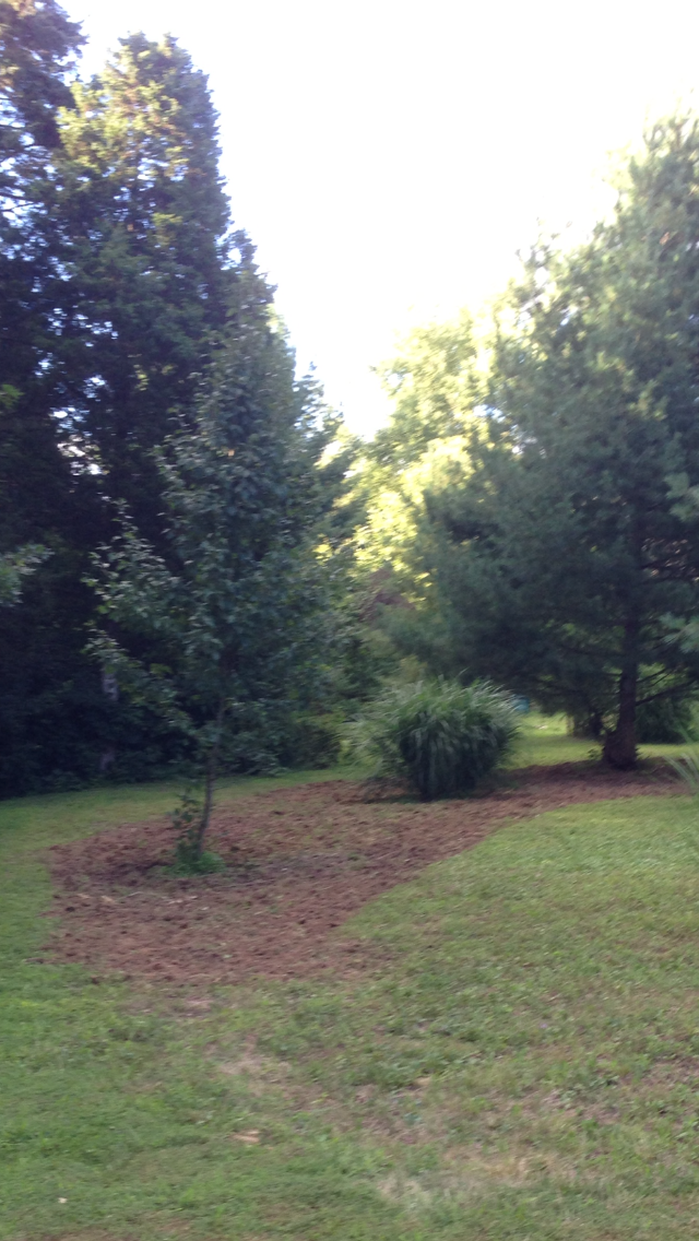 This evening I got the first plants into the to-be butterfly garden. After finding out how much it will cost to have bulk top soil added to the space, I realized that I may have to really go piece by piece. So, I planted 3 coreopsis and raised the bed with 3 bags of topsoil. Add mulch, and voila!