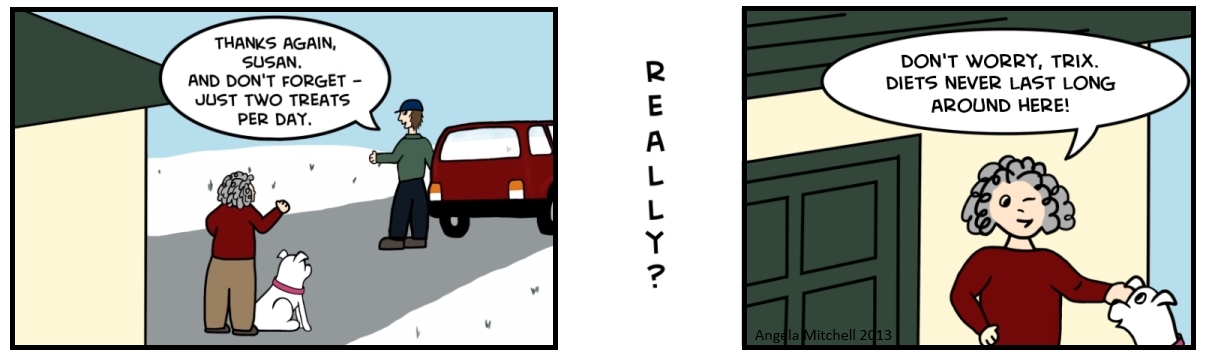 Heading out Trixie gets dropped off and reminded again that she is, in fact, on a diet. Share this: Click to share on X (Opens in new window) X Click to email a link to a friend (Opens in new window) Email Click to share on Facebook (Opens in new window) Facebook Click to share on Reddit (Opens in new window) Reddit More Click to share on Tumblr (Opens in new window) Tumblr Click to share on Pinterest (Opens in new window) Pinterest Like Loading...